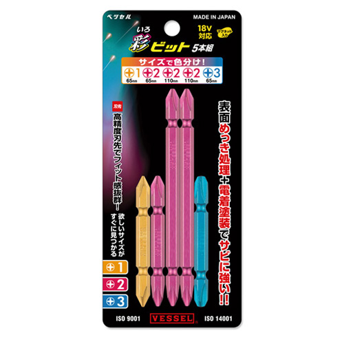 先端工具・ドリルアタッチメントのメーカー・ビットベッセルIR5P02。サイズで色分けしています。
