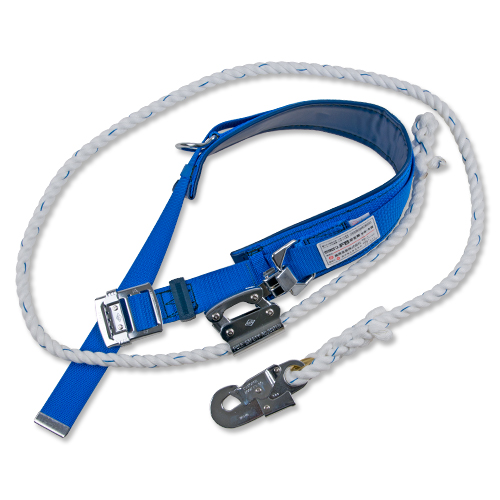 【用途】 配電線工事、内線工事、通信線工事、その他高所作業。 【機能・特徴】 付属の伸縮調節器は、荷重が加わると押爪がロープを噛み、任意の位置で停止しますので、体重を預けての定位置作業が可能です。 【仕様】 ●ベルト色:ブルー。 ●胴ベルト:幅45mmx長さ1200mm・鉄バックル。 ●補助ベルト:幅85mmx長さ650mm・D環・角環各1個付。 ●ランヤード:三つ打ち・直径16mm×長さ2100mm(フック含む)。 ●フック:口開き13mm。 【材質】 ●ベルト:ナイロン。 ●ロープ:ビニロン。 ●フック:スチール。 【商品サイズ】重量1820g 【注意事項ほか】 ●100kgを超えると墜落時に大きな衝撃荷重が加わり、安全帯が破断して重大な事故が起こるおそれがありますので、体重と装着する全ての物の重量の和が100kg以下でご使用下さい。 ●本品は、Uつり作業(ロープ先端のフックを対象物に回して安全帯のD環に掛けて、ランヤードがUの字になる状態で、体重を預けての作業が可能です。)専用で、1本つり作業(ロープ先端のフックを対象物に直接掛けるか、対象物に回して8字環またはロープに掛けて、対象物と人体とがランヤード1本でつながっている状態で、万一の墜落時に落下を阻止するものであり、U字つりのようなランヤードに体重を預ける使用はできません。)には使えません。