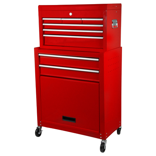 【用途】 道工具・小物類の収納保管・整理。 【機能・特徴】 引出しはスムーズな開閉ができるベアリングレールを採用しました。 各段引き出し用マット付きです。 【仕様】 ●セットサイズ(トップチェストをローラーキャビネットに設置した場合):幅620×奥330×高さ1070mm。 ●セット重量:27.5kg。 ●トップチェストサイズ:幅600×奥260×高さ345mm。 ●ローラーキャビネットサイズ:幅620×奥330×高さ740mm。 ●本体最大耐荷重:80kg(本体重量含む)。 ●トップチェストサイドハンドルの耐荷重:25kg(本体重量含む)。 【商品サイズ】幅680×高さ720×奥行390mm 重量29500g 【注意事項等】 簡単な組み立てが必要になります。必要な道具は+NO.2ドライバーと10mmレンチです。 引出しは2つ同時に開かないでください。転倒する恐れがあります。 移動する前に全ての引出しを閉め、トップチェストに引き出しストッパーをして、トップカバーを閉てください。そして、ローラーキャビネットの引出しを押さえながら移動してください。
